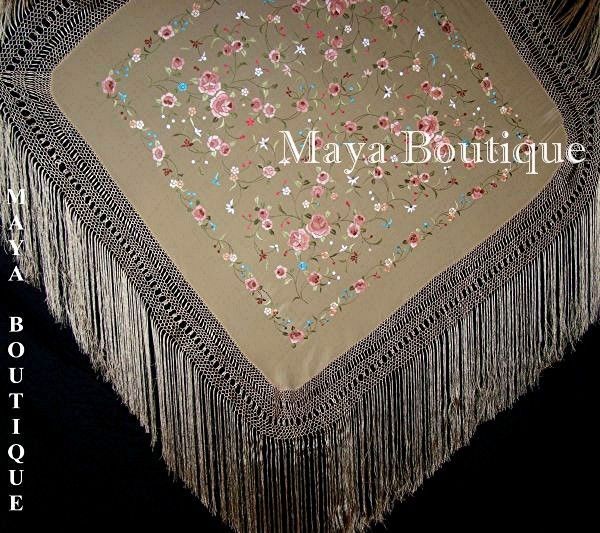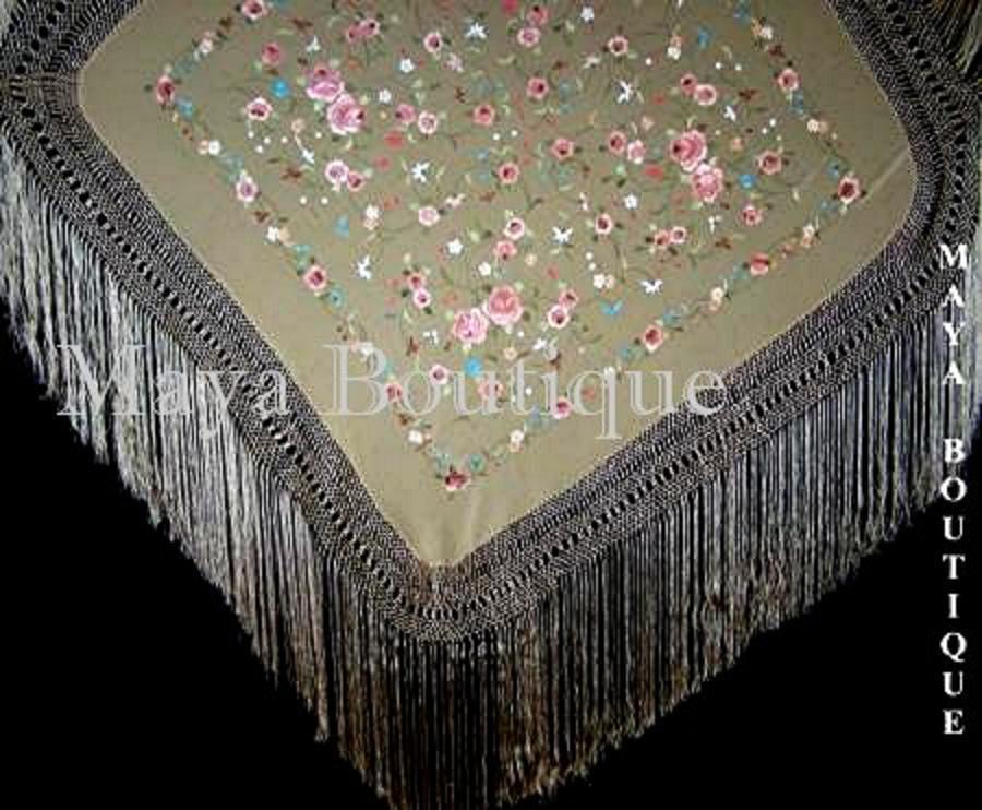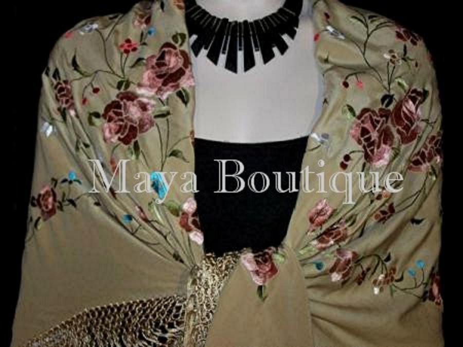 FLAMENCO HAND EMBROIDERED SILK FLORAL SHAWL WRAP