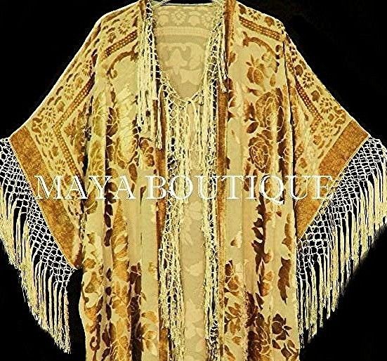 Antique Gold fringe kimono burrnout velvet jacket opera coat